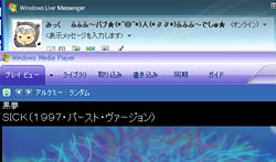手前にWindows Media Player、その後ろにMessengerがあります。