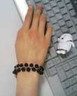 まだネックレスが作れるほどのビーズ数が無いので、作り直したブラックシリカのブレスを2ぼいさんに巻いてみました。ほ~ら、マイナスイオンをいっぱい吸って元気いっぱいになるんだよ~(笑)。