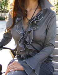 写真のはグリーンですが、買ったのは黒です。このビラビラ~としたのはカーディガンなのですがね。