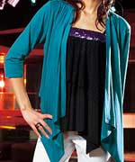なんとなく、コート(ジャケットか)がメインの写真に見えますが、買ったのは中のキャミソールです(笑)。上のカーディガンとも合いそうだし、それに色合いが気に入ったので注文しました。