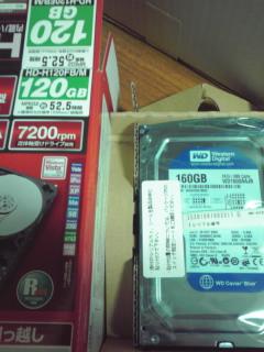 私は『120GBの内蔵HDD』を注文したのですが、中身には”160GB”の文字が…。え?なんで??160GB???
