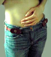 ベルトをしていると腰骨のところにあたって、青あざが出来たり、夏場とかの薄着時期では皮膚が擦れて血が滲んだ事もあったですよ。本当、イタイんです。