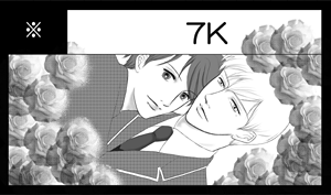 サークル名が考えきれず、『7K』にしました(笑)。このカット枠、妙にデカいので(苦笑)薔薇で誤魔化してます。どんな風に倒れても大丈夫なように、サークル名以外の文字は入れずに描きました(笑)。