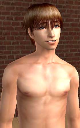 こちらがシム2啓太君。目と肌を替えました。あれ?あんまりブルーカラーの目じゃないなぁ(笑)。