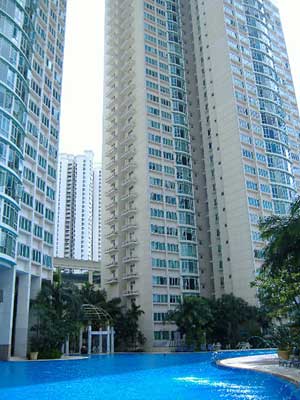 ちなみに白くて細長いのは電車(地下鉄)です。駅も近いしバス停も近いところなので、ここのコンドミニアムは交通も便利な場所です。