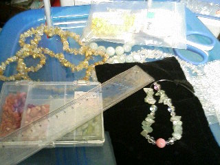 こんな感じでビーズをひろげて作っているのです。作業スペースが狭いところでやってます。