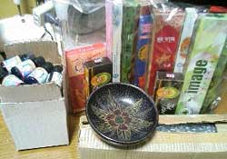 これらがね、ダンボール箱の面積の3分の1.5取ってましたね(笑)。アロマオイルが4本もあるし。もうね、気分はインドですよ。福袋のお陰でインド行った気分になりました。(…正確には”インド雑貨店”に行ったって感じもするが。笑)