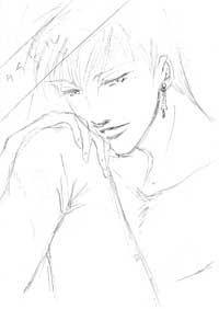 私の絵は、この程度の描き方が下絵に近い状態です。スキャナで取り込んだ後の線修正等の方がよっぽど時間かかるので、人物の下絵はあまり細かく描いてません。